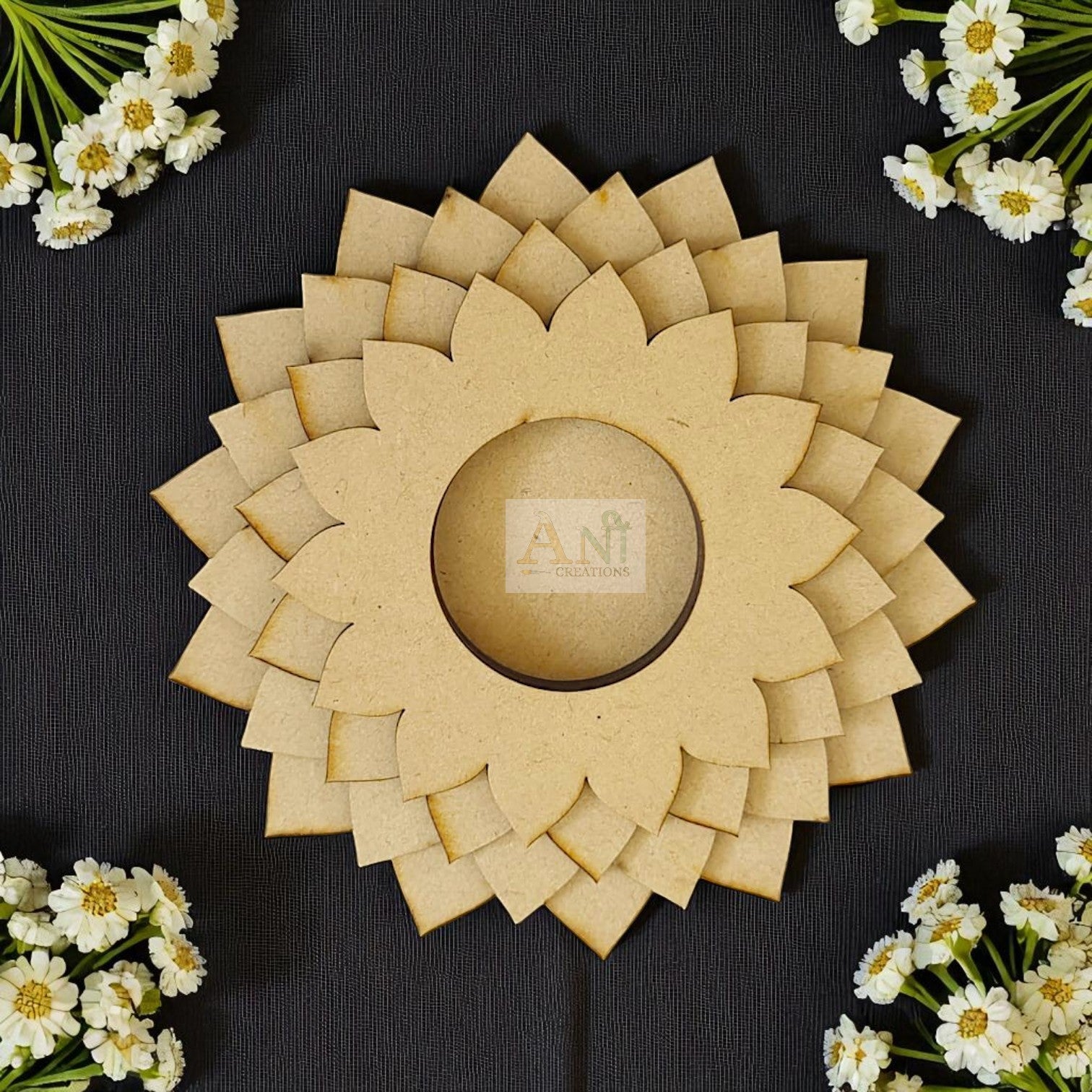 Crafted from premium quality MDF wood, these T-light holders are lightweight, sturdy, and ideal for long-term use. All MDF Bases are developed with the help of German Laser machine having minimum blackness and fine cutting on MDF. - Smooth Finish for Customization: These Bases are made from New Zealand Pine MDF having extra fine grains for any coloring mediums/ sketch pens etc.